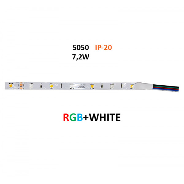 LED Strip Adhesive White PCB 5m 12VDC 7.2W/m 36L/m RGB White IP20